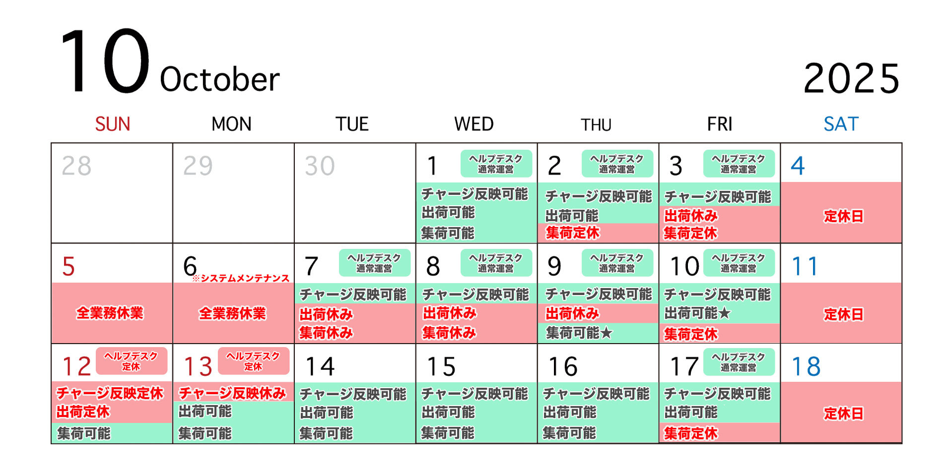 2025.07.31: 集荷・出荷 休業日程に一部変更がございます。